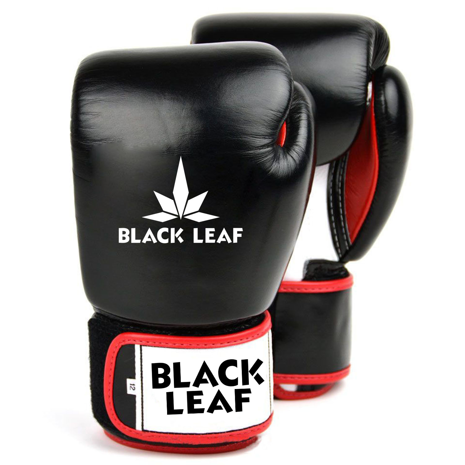 Black Leaf Custom Logo Hook and Loop Boxing Gloves